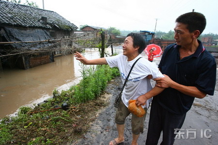 A woman cries over her home destroyed in a mud flood caused by a heavy downpour in Yongchuan, Southwest China's Chongqing Municipality July 9, 2007. [IC]