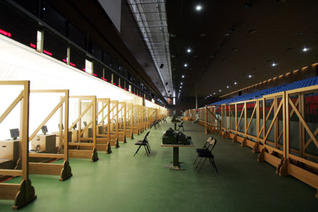 The interior of the newly-finished Beijing Shooting Range is seen July 23, 2007. The shooting range, which will host the 29th Olympic Games shooting events, became the first among Beijing Olympic venues to offially allow trainings as the Chinese Shooting Team entered Monday. [Xinhua]