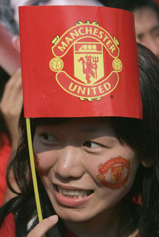 A Chinese fan of Manchester United reacts during a promotional event of the English soccer team in China's southern city of Guangzhou in Guangdong province July 26, 2007. Manchester United will play against Guangzhou Yi Yao on July 27 in Guangdong Olympic Stadium as the last match of their Asian tour. [Reuters] |
