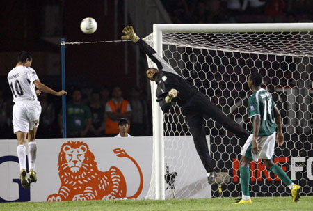 Inspired Iraq in Asian Cup triumph(Reuters)Updated: 2007-07-30 08:55 Iraq's captain Younis Mahmoud (L) scores past Saudi Arabia's goalkeeper Yasser Al Mosailem (C) as Saud Khariri looks on during their final match at the 2007 AFC Asian Cup soccer tournament at the Gelora Bung Karno stadium in Jakarta July 29, 2007.[Reuters] |