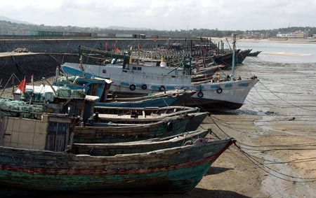 Ships are anchored at a harbour before the tropical storm Wutip hits the coastal areas in Putian, East China’s Fujian Province August 9, 2007. Wutip, meaning "butterfly", is set to unleash gales and rain in Fujian and neighboring Zhejiang province from late Thursday through to Friday, Xinhua News Agency reported. [Xinhua] |