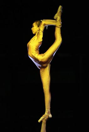 Members of the Zunyi Acrobatic Troupe from the Chinese National Acrobatic Circus perform during a show in Roquetas de Mar, southeast Spain, late August 12, 2007.[Reuters]