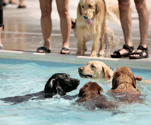 Dogs lounge in the swimming pool during Upton Hill Regional Park's annual swim day for dogs in Arlington, Virginia, September 8, 2007. [Reuters]