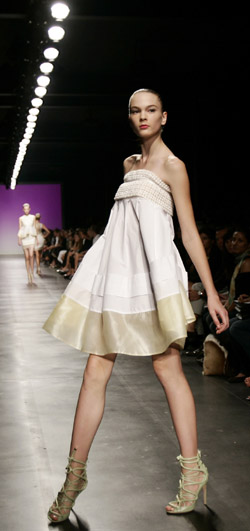 A model wears a creation as part of Alessandro Dell'Acqua's Spring/Summer 2008 women's collection during Milan Fashion Week in Milan September 24, 2007. [Reuters]