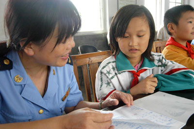 Updated: 2007-09-25 22:29 ![]() A law enforcement officer, acting as a surrogate mother of left behind children, examines a girl's homework during a gathering to celebrate the traditional Mid-Autumn Festival in Lianyungang, East China's Jiangsu Province September 25, 2007. These children's real parents have rushed to thriving cities and regions across the country to eke out a living. [newsphoto]