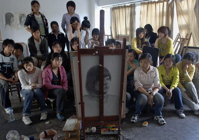 the entrance examination for an arts college in Hefei, east China's Anhui province October 11, 2007. [Agencies]
