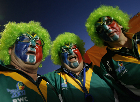 Updated: 2007-10-15 15:47 ![]() South Africa team rugby fans gather outside the stadium before the start of the semi-final Rugby World Cup match against Argentina at the Stade de France Stadium in Saint-Denis, near Paris, October 14, 2007. [Agencies]