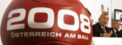Updated: 2007-10-23 22:06 ![]() Austrian Chancellor Alfred Gusenbauer (2nd R) and State Secretary Reinhold Lopatka (R) address a news conference on the EURO 2008 soccer championships, in Vienna October 23, 2007. [Agencies]
