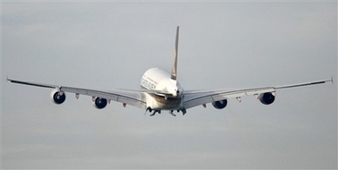 Singapore Airlines Airbus A380 retracts its wheels after taking off from the runway at Changi International Airport for Sydney, Thursday Oct. 25, 2007 in Singapore. The Airbus A380 took off on a historic journey Thursday, the first commercial flight by the world's largest jetliner that boasts luxurious suites, double beds, a bar and the quietest interior ever. [Agencies]
