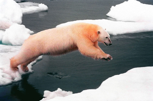 Updated: 2007-12-03 14:06 ![]() A polar bear jumps between floating chunks of ice near the Arctic circle in this photo taken in 1999. A United Nations conference opened December 3 in Bali to hammer out a new climate agreement in an effort to curb global warming that has fueled extreme weather conditions. [Xinhua]