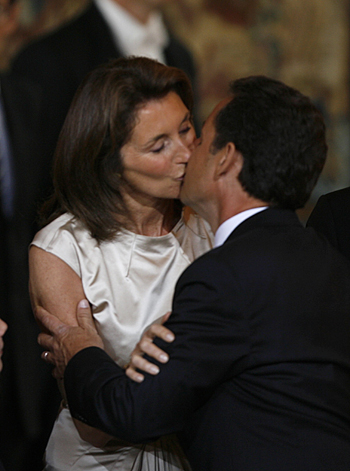 France's new President Nicolas Sarkozy kisses his wife Cecilia after the handover ceremony at the Elysee Palace in Paris May 16, 2007.