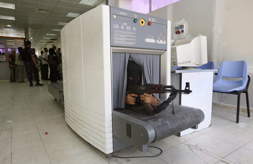 Updated: 2007-12-04 11:10 ![]() A Hamas fighter takes position inside a scanning machine in the customs hall of the Rafah crossing border, between Egypt and the southern Gaza Strip, after they captured it, June 15, 2007.