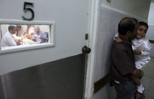 Updated: 2007-12-04 13:25 ![]() A man holds his son outside an operating theatre while surgeons perform circumcision on an another boy at Bab -El-Oued Hospital in Algiers October 8, 2007. Circumcision is compulsory for Muslim boys under the Sharia (Islamic Law).