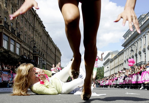 Updated: 2007-12-04 17:36 ![]() Women compete in a high-heel sprint in St.Petersburg July 21, 2007. Some 100 women took part in the race wearing high-heeled shoes with a required minimum height of 9 centimetres (3.5 inches) to compete for a shopping voucher worth 50,000 roubles (about $2,000).