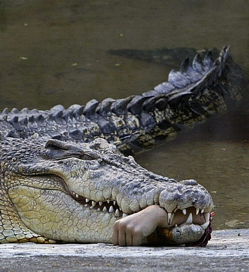 Updated: 2007-12-05 10:24 ![]() A crocodile at a zoo in the southern Taiwan city of Kaohsiung holds the forearm of a zoo veterinarian in between its teeth, April 11, 2007. The crocodile bit off the arm of the zoo veterinarian treating it.