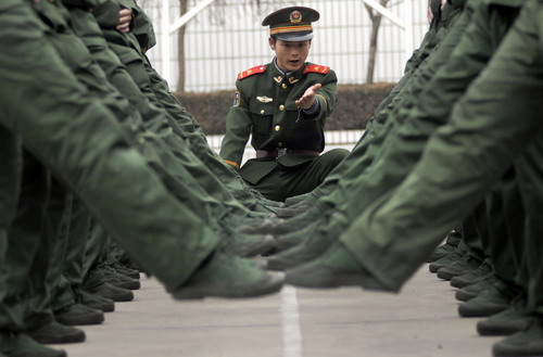 Updated: 2007-12-05 10:24 ![]() Paramilitary recruits practice goose-stepping led by their monitor during a regular training in Nanjing, East China's Jiangsu Province January 19, 2007.