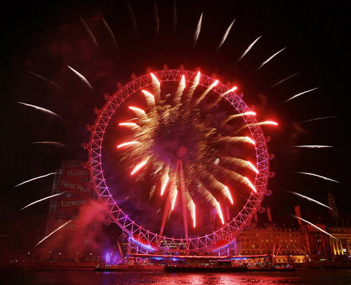Fireworks explode over the River Thames in London to celebrate the new year January 1, 2007.