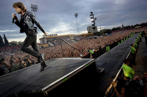 Mick Jagger of the Rolling Stones performs in front of a capacity crowd during a concert at Valle Hovin Stadium in Oslo August 8, 2007.