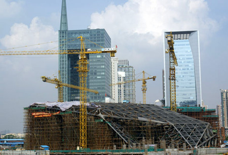 Updated: 2007-12-13 15:30 ![]() The Guangzhou Opera House is seen under construction in Guangzhou, South China's Guangdong Province, in this photo taken on July 17, 2007. With an estimated investment of 1 billion yuan (US$120 million), the structure is expected to become the biggest performing centre in South China. [cncscs.com]