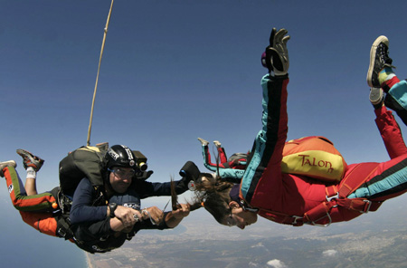 Updated: 2007-12-13 17:19 ![]() Israeli hairdresser Oren Orkabi cuts Sharon Har Noi's (R) hair while skydiving at 14,000 feet (4,267 metres) above northern Israel, near Haifa April 25, 2007, in this picture released April 26, 2007 by Paradive Skydiving. The haircut was an attempt to enter the Guinness Book of World Records. [Agencies]