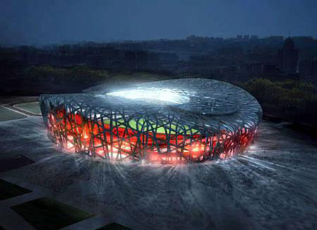 No. 6 Olympic Stadium, Beijing. Athletes at the Summer Games will compete in a nestlike venue by Herzog & de Meuron. [Xinhua]