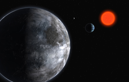 Updated: 2007-12-19 10:56 ![]() An artist's rendering of a planet currently called Gliese 581C (L), which was discovered by European astronomers on April 24, 2007. The planet is located about 20 light years away from Earth, with potentially life sustaining qualities remarkably similar to our own planet. [Xinhua]