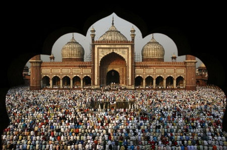 Indian Muslims pray in a mosque in Delhi during the Corban, Oct. 14.