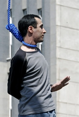 Updated: 2007-12-21 15:00 ![]() An Iranian man waves final good-bye to his relatives before being hanged, in Teheran, Aug. 2, 2007. Two men were hanged for murdering a judge in 2005. This was the first time Iran had implemented hanging in public since 2002.