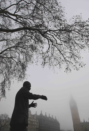 Updated: 2007-12-24 10:54 ![]() A statue of former South African President Nelson Mandela, unveiled in 2007, is seen in morning mist at Parliament Square in central London December 23, 2007. [Agencies]