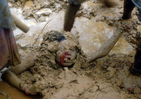 Rescuers are saving a man from mud after a mudslide in Chittagong, Bangladesh, June 12, 2007.