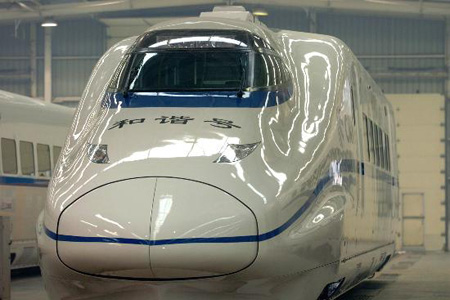Updated: 2007-12-25 16:36 A home-made CRH2-300 high speed train rolls off the production line in Qingdao, East China's Shandong Province, December 22, 2007. The bullet train is designed to run more than 300 kilometers per hour, and is among the fastest trains in the world. [Xinhua]
