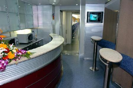 Updated: 2007-12-25 16:36 ![]() A bar inside the home-made CRH2-300 high speed train in Qingdao, East China's Shandong Province, December 22, 2007. The bullet train is designed to run more than 300 kilometers per hour, and is among the fastest trains in the world. [Xinhua]