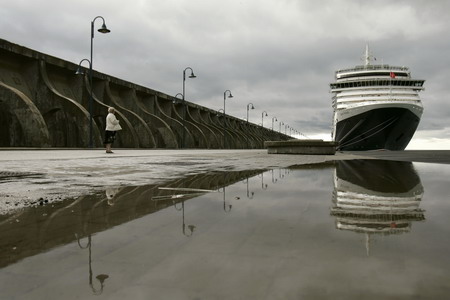 woman looks at Cunard's new ocean liner "Queen Victoria" at the port of Malaga December 26, 2007. [Agencies]