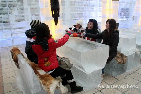 Updated: 2007-12-29 10:30 ![]() Customers have a drink at an ice bar in downtown Harbin, Northeast China's Heilongjiang Province, December 28, 2007. The bar is built entirely out of ice cubes, and is the first of its kind in the Ice City. [Asianewsphoto]