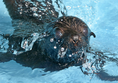 Updated: 2008-01-12 14:56 ![]() A baby sea lion swims at the Buenos Aires' Zoo aquarium January 11, 2008. The baby sea lion, which was born in December 24, 2007, weighs 7kg (18.75 pounds) and has not yet been named. It was presented to the public today. [Agencies]