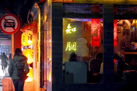 Updated: 2008-01-18 14:58 ![]() A woman walks along South Luogu Lane (Nanluoguxiang) with cafes and bars in central Beijing, January 6, 2008. More than 70 cafes and bars have mushroomed in the area since 2002, turning the small quiet hutong neighborhood into a popular nightlife destination for young people and tourists from home and abroad. [Xinhua]