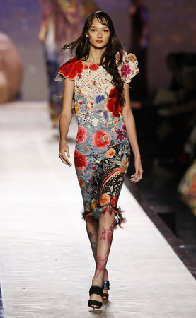 Updated: 2008-01-24 10:34 ![]() A model presents a creation by French designer Jean-Paul Gaultier as part of his Haute-Couture Autumn-Winter 2008-2009 fashion collection in Paris, January 23, 2008. [Agencies]