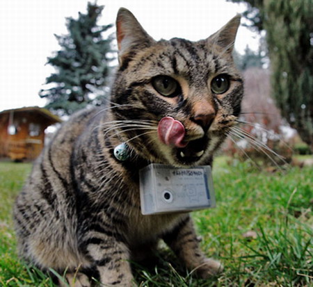 Updated: 2008-01-24 17:29 ![]() A cat named Fritz wears a compact camera around his neck. The camera is programmed to take pictures every 15 seconds as Fritz roams around and his mistress has uploaded some of his photos on the Internet.[Xinhua]