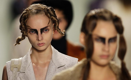 A model wears a creation by Italian fashion label Intuitive during the Berlin Fashion Week January 31, 2008. [Agencies]