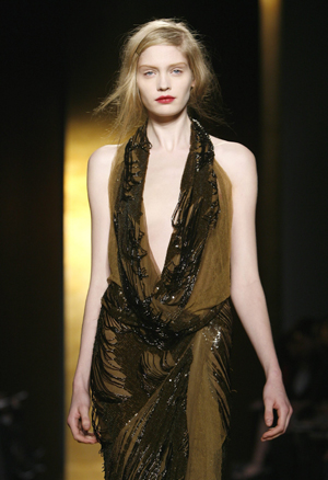 A model presents a creation from Donna Karan's 2008/2009 Fall/Winter collection during the New York Fashion Week February 8, 2008. [Agencies]