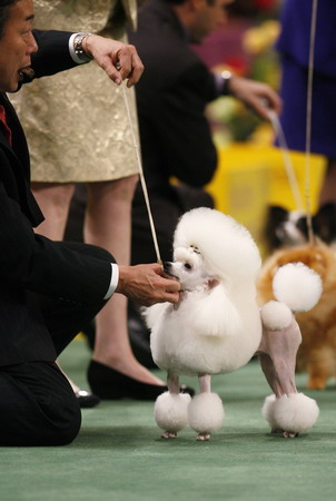 Updated: 2008-02-13 17:00 ![]() Handler Kaz Hosaka feeds a treat to Toy Poodle, Vikki, before winning the toy group during the 132nd Westminster Kennel Club Dog Show at Madison Square Garden in New York February 12, 2008. [Agencies]