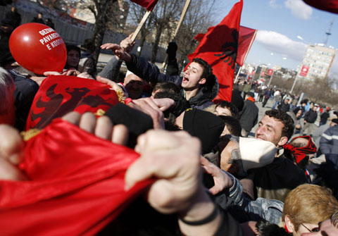 Kosovo Albanians celebrate in the centre of Pristina February 17, 2008. [Agencies]