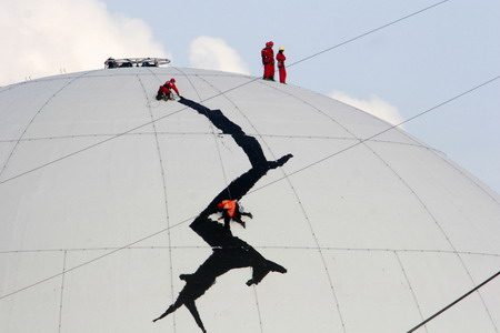 Updated: 2008-02-27 11:45 ![]() Greenpeace activists enter the Borssele nuclear power plant to paint a huge crack on the plant's dome in Zeeland, the Netherlands, in this handout photo dated May 18, 2005. [Agencies]