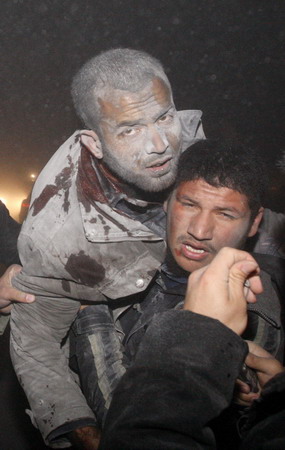 Updated: 2008-02-29 09:21 ![]() A Palestinian evacuates a wounded man after an Israeli missile destroyed the Workers Union headquarters in Gaza February 28, 2008. Hamas said an Israeli missile destroyed the main headquarters of the Workers Union in Gaza. [Agencies] |