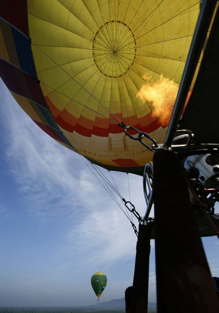 Hot air balloons fly during the celebrations of "Sri Lanka Balloon Festival 2008" at Tissamaharama, in Hambantota, about 238 kilometres (148 miles) south of Colombo March 26, 2008. About 70 participants from European nations and Japan joined the festival which runs from from March 26 to April 4. [Agencies]