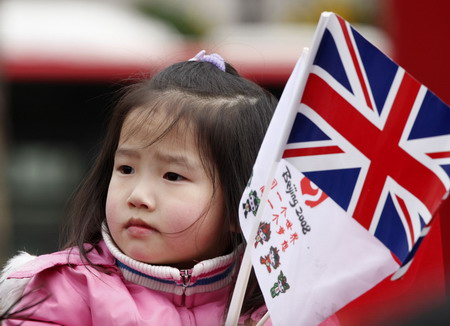 A young spectator watches in Trafalgar Square as the Olympic torch passes during the Olympic torch relay through London April 6, 2008. London is the fourth stop of the 2008 Beijing Olympic Games torch relay outside the Chinese mainland. [Agencies]