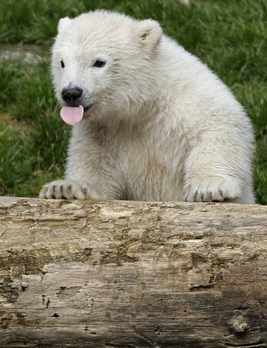 Polar bear cub Flocke (snowflake) walks through her enclosure at the zoo in Nuremberg during her first public appearance, April 8, 2008. [Agencies]