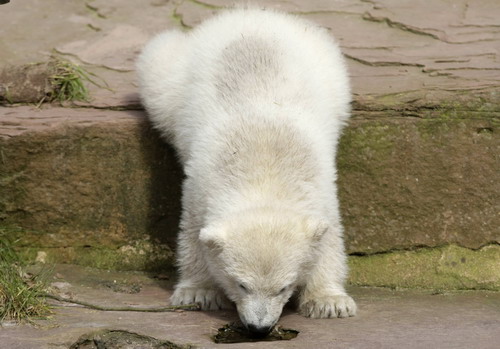 Polar bear cub Flocke (snowflake) walks through her enclosure at the zoo in Nuremberg during her first public appearance, April 8, 2008. [Agencies]