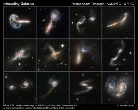 In celebration of the Hubble Space Telescope's 18th launch anniversary on April 24, 2008, this image of colliding galaxies illustrates how galaxy collisions produce a remarkable variety of intricate structures in never-before-seen detail. All images have a common theme: galaxy collisions across space and time. Hubble reveals wondrous new details in this photo journal of "galaxies gone wild." [Agencies]