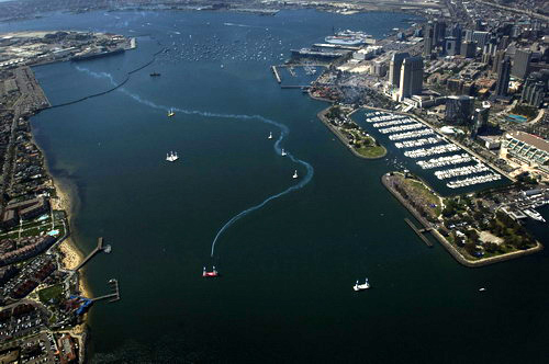 Russian pilot Sergei Rakhmanin performs during the qualifying session for the Red Bull Air Race World Series in San Diego, California May 3, 2008. [Agencies]